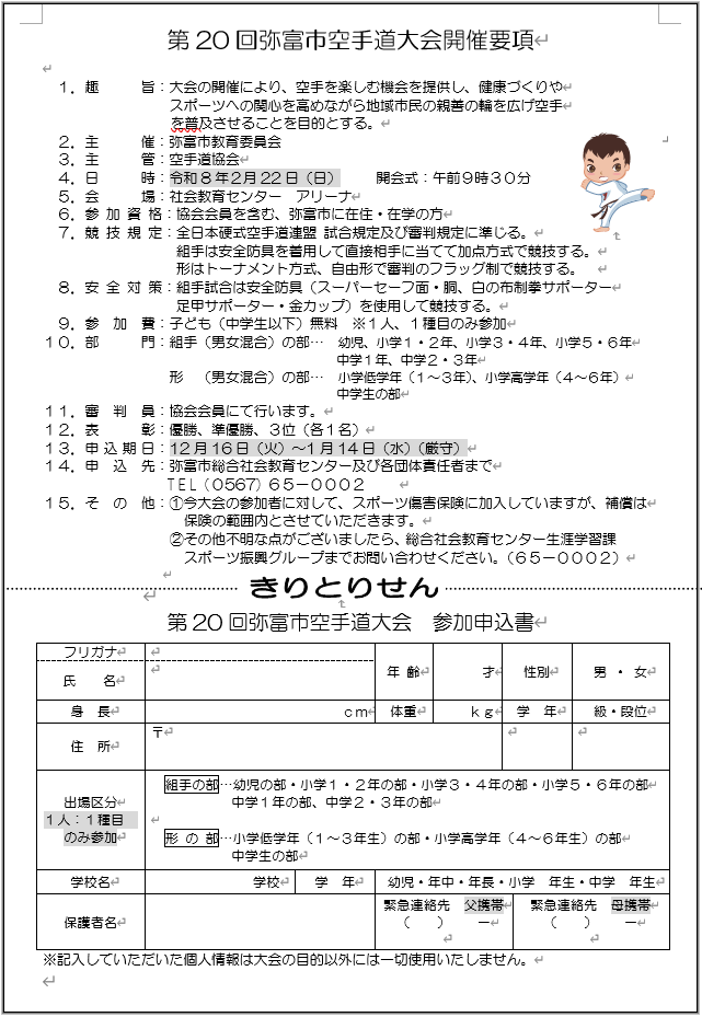 第20回弥富市空手道大会参加者募集
