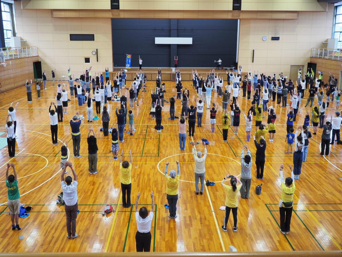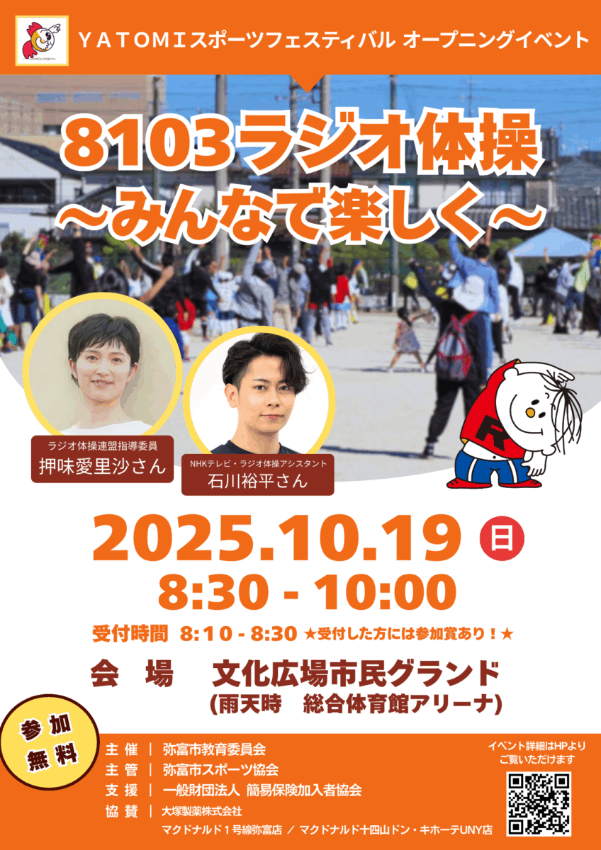 「8103(やとみ)ラジオ体操~みんなで楽しく~」が、YATOMIスポーツフェスティバルのオープニングイベントとして開催されました。