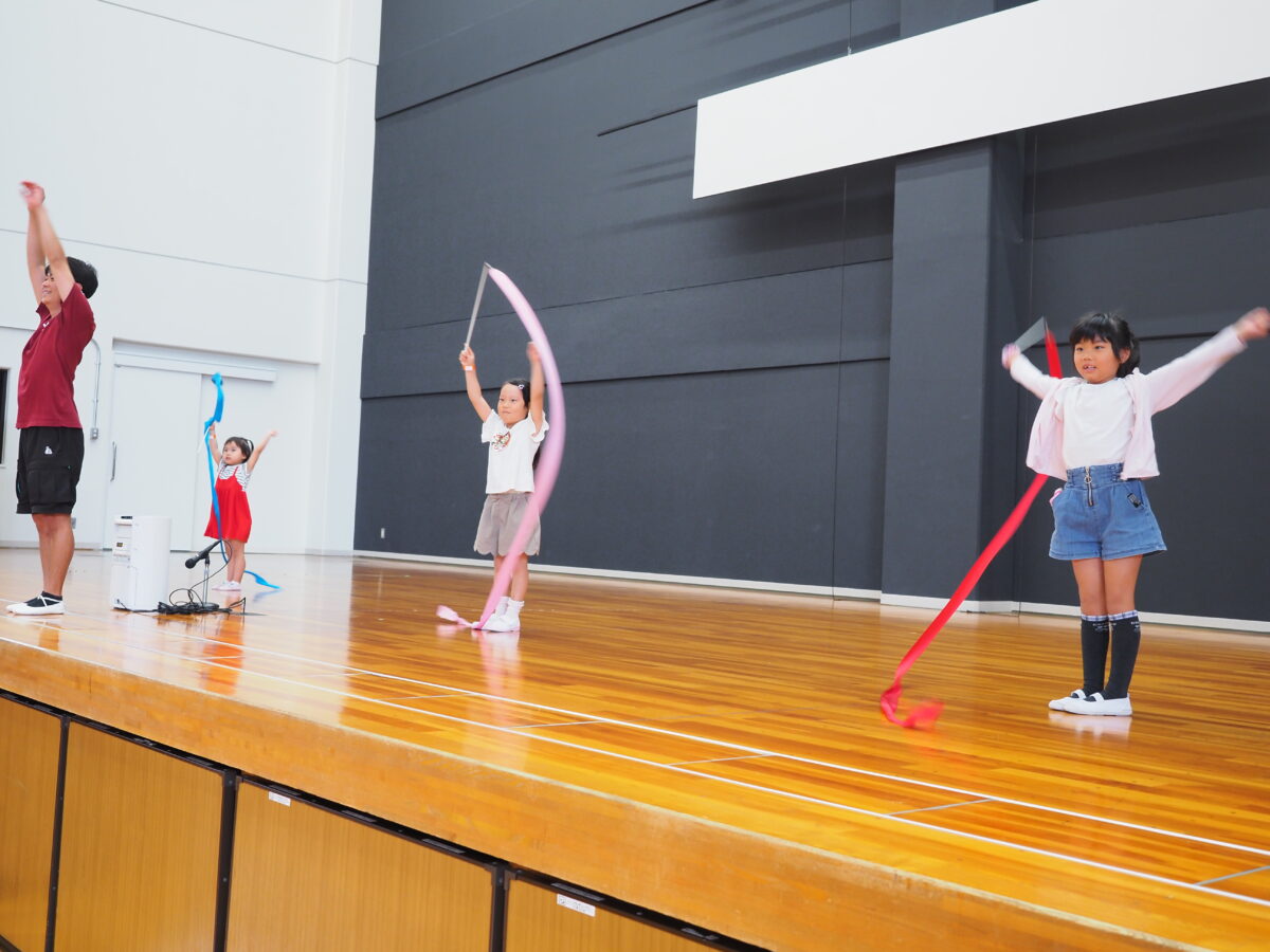 ★腕を回す運動では、新体操のリボンを使って腕を大きく回すことを体感