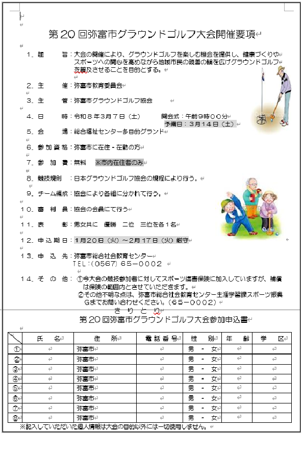 第20回弥富市グラウンドゴルフ大会参加者募集